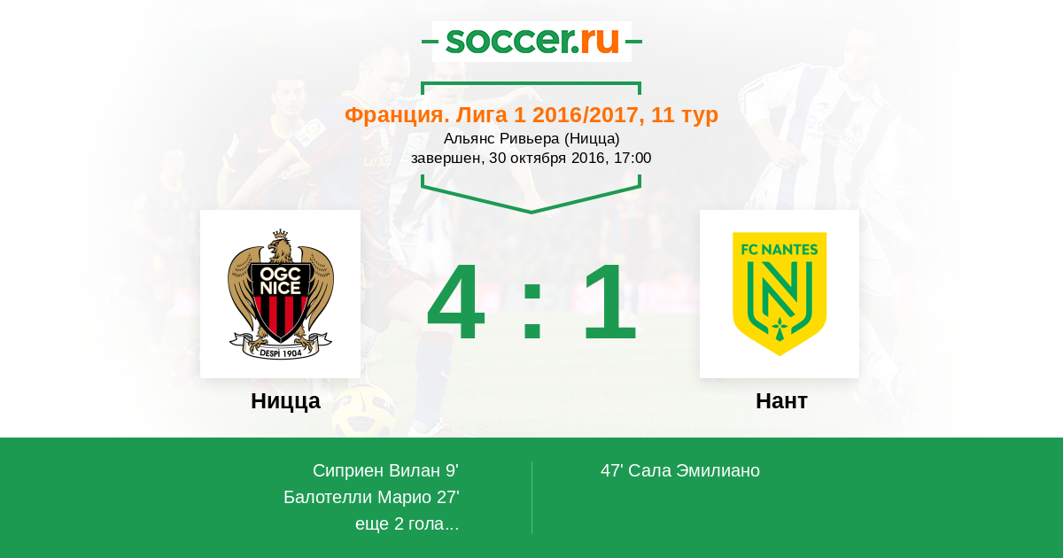 27' (2:0) Балотелли Марио (9) (Сери Жан Мишель (6))