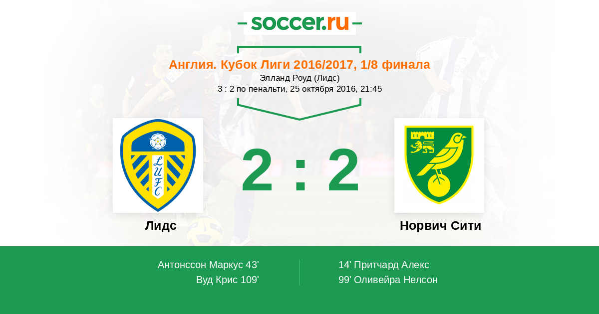 Гол99' (1:2) Оливейра Нелсон (9) (Притчард Алекс (21))
