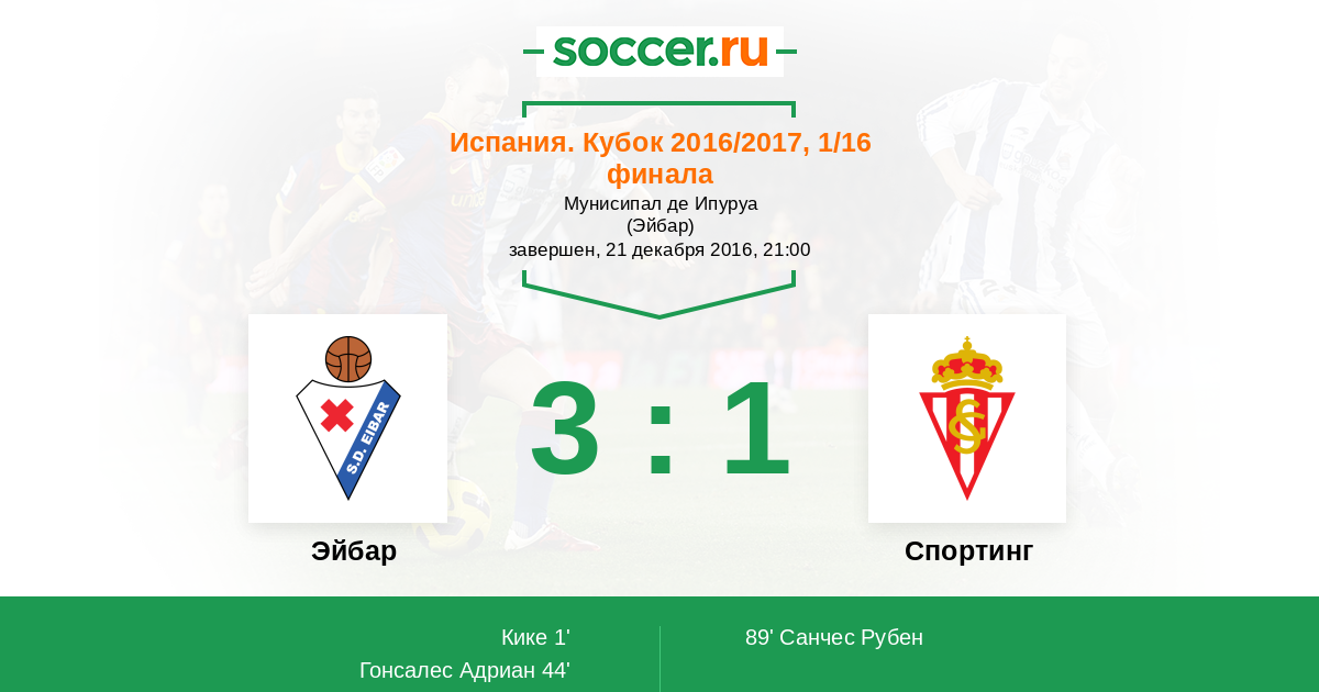 1' (1:0) Кике (17)