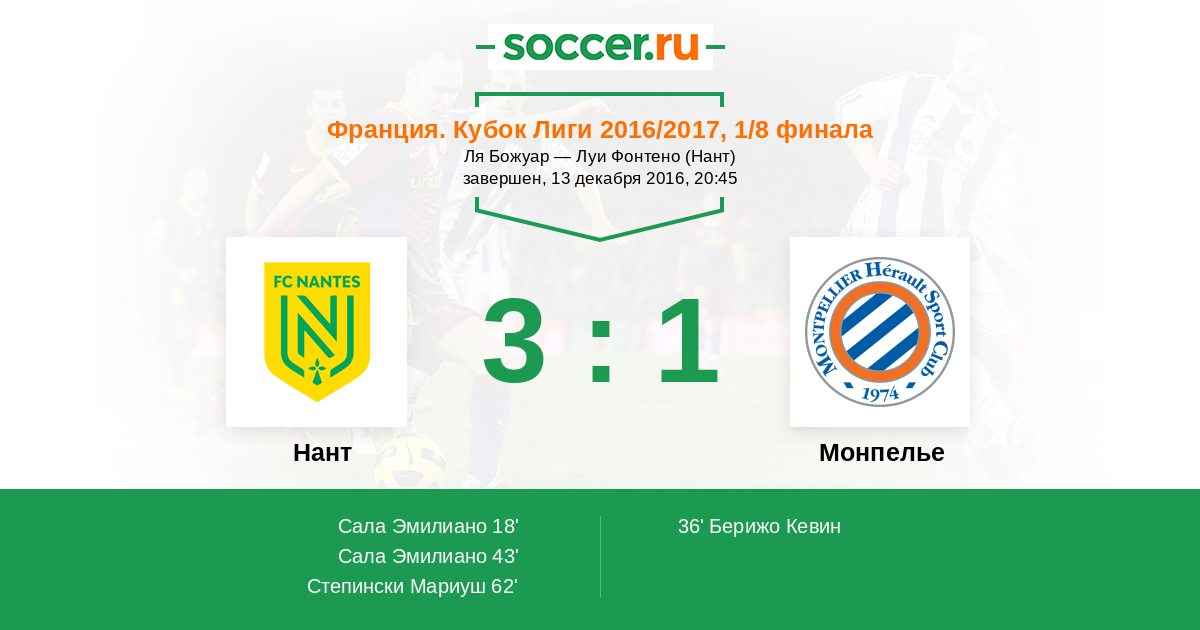 43' (2:1) Сала Эмилиано (9) (Илоки Жюль (7))