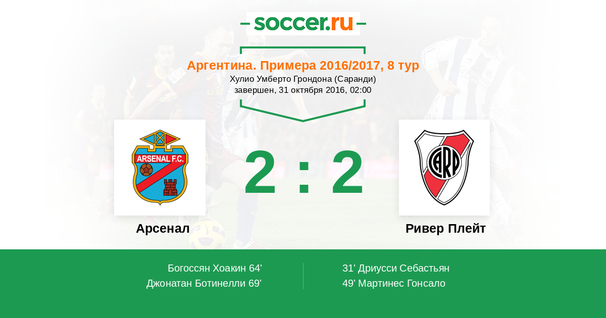 64' (1:2) Богоссян Хоакин (34) (Санабрия Габриэль (10))