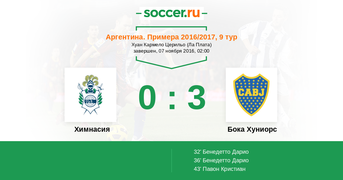 36' (0:2) Бенедетто Дарио (9) (Тевес Карлос (10))