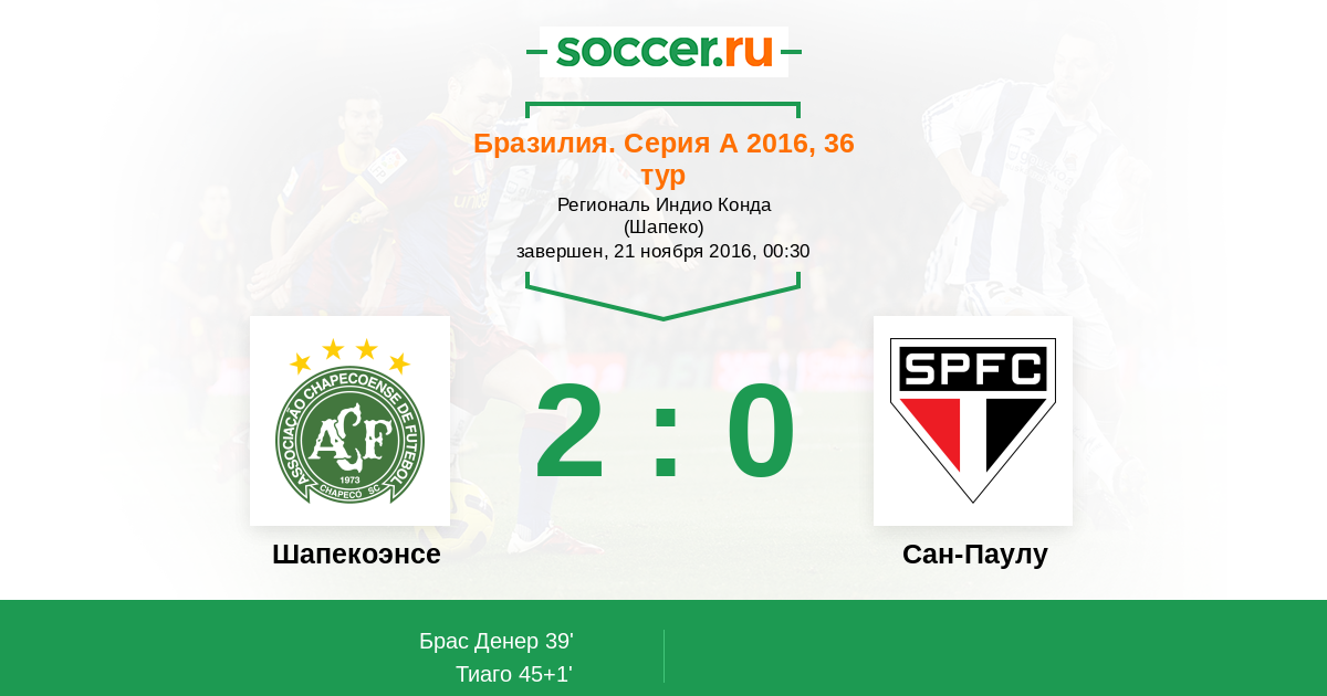 45+1' (2:0) Тиаго (94) (Тиего де Хесус (27))