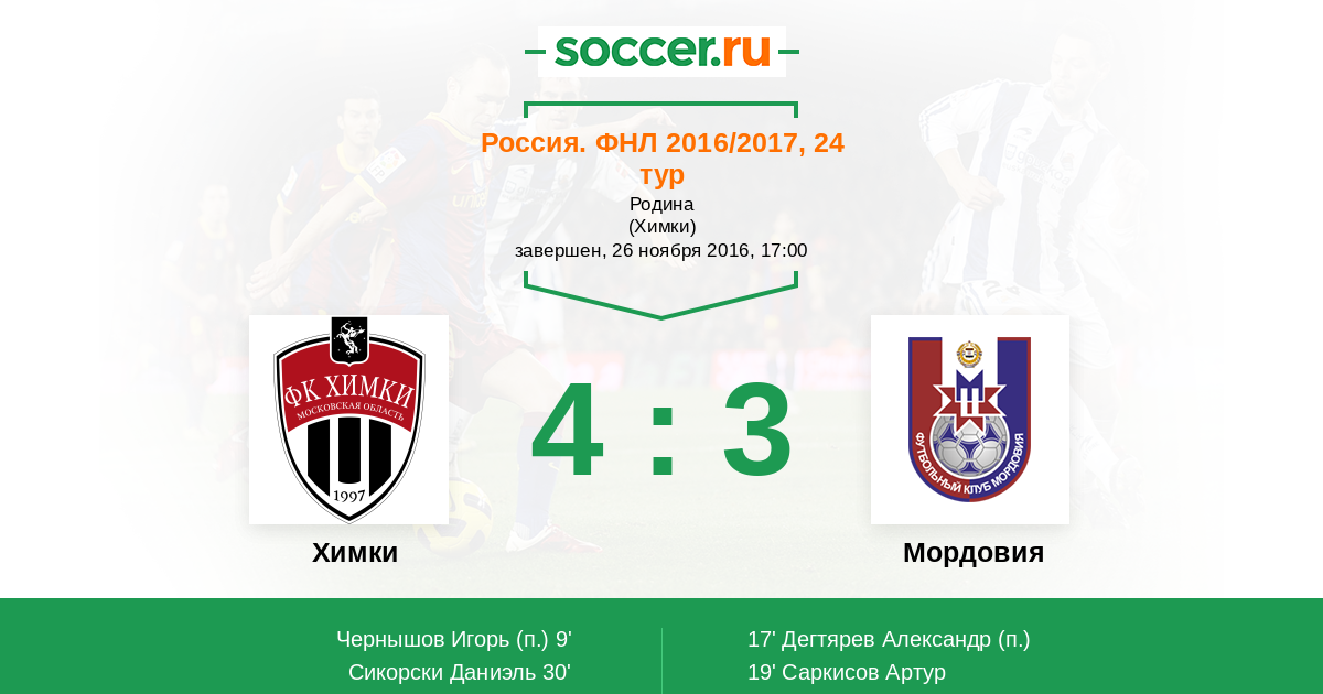 24' (1:3) Саркисов Артур (99)