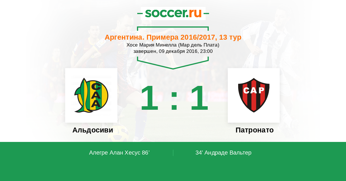 86' (1:1) Алегре Алан Хесус (2) (Ариас Рамиро (13))