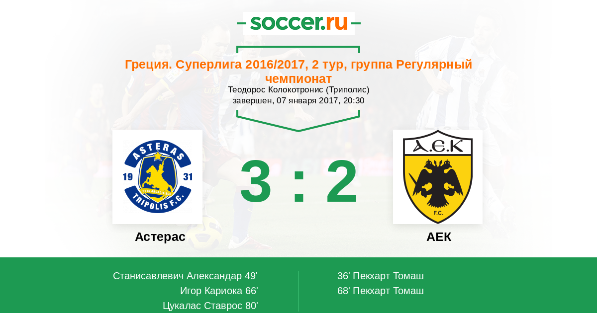 80' (3:2) Цукалас Ставрос (13) (Калцас Николаос (23))