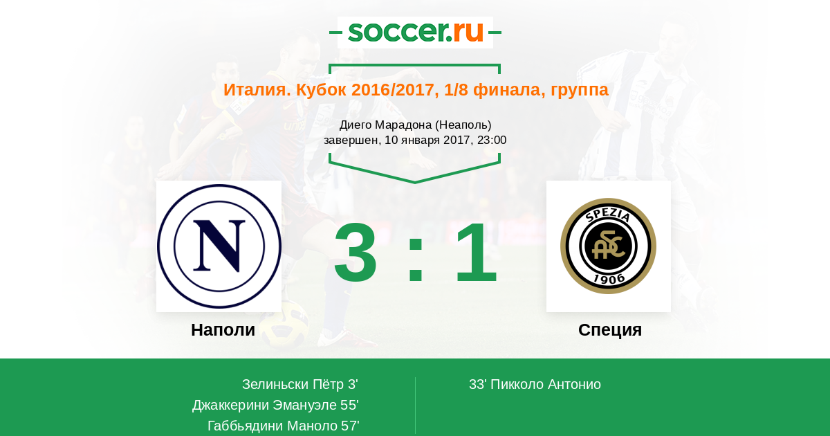 57' (3:1) Габбьядини Маноло (23) (Рог Марко (30))