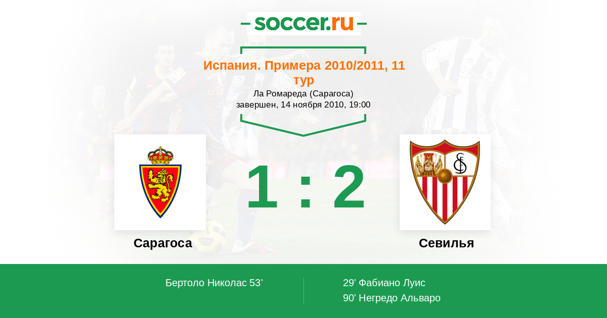 29' (0:1) Фабиано Луис (10) (Кануте Фредерик (12))