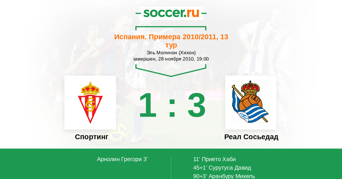 Гол90+3' (1:3) Аранбуру Микель (11) (Прието Хаби (10))