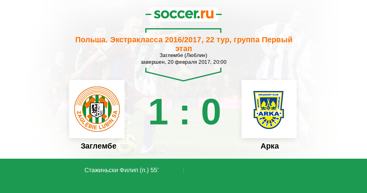 55' (1:0) Стажиньски Филип (18)