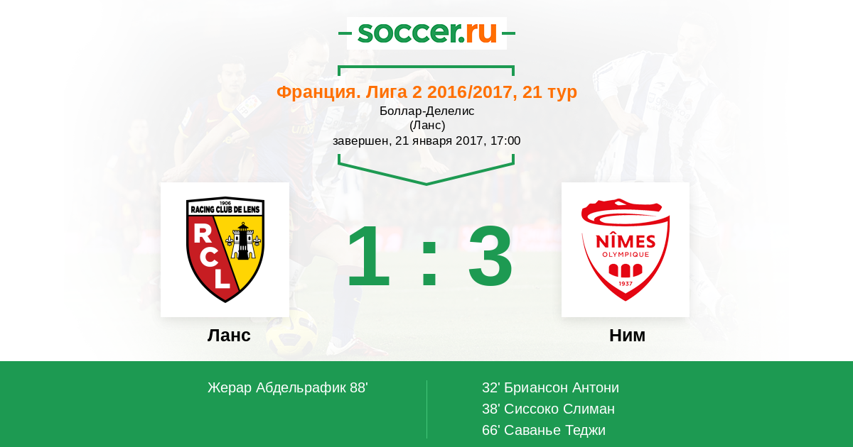 88' (1:3) Жерар Абдельрафик (20) (Буриго Бенжамен (29))