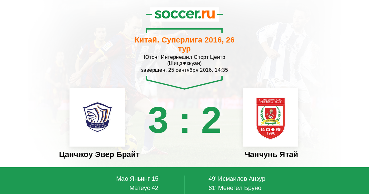 15' (1:0) Мао Яньинг (7) (Матеус (33))