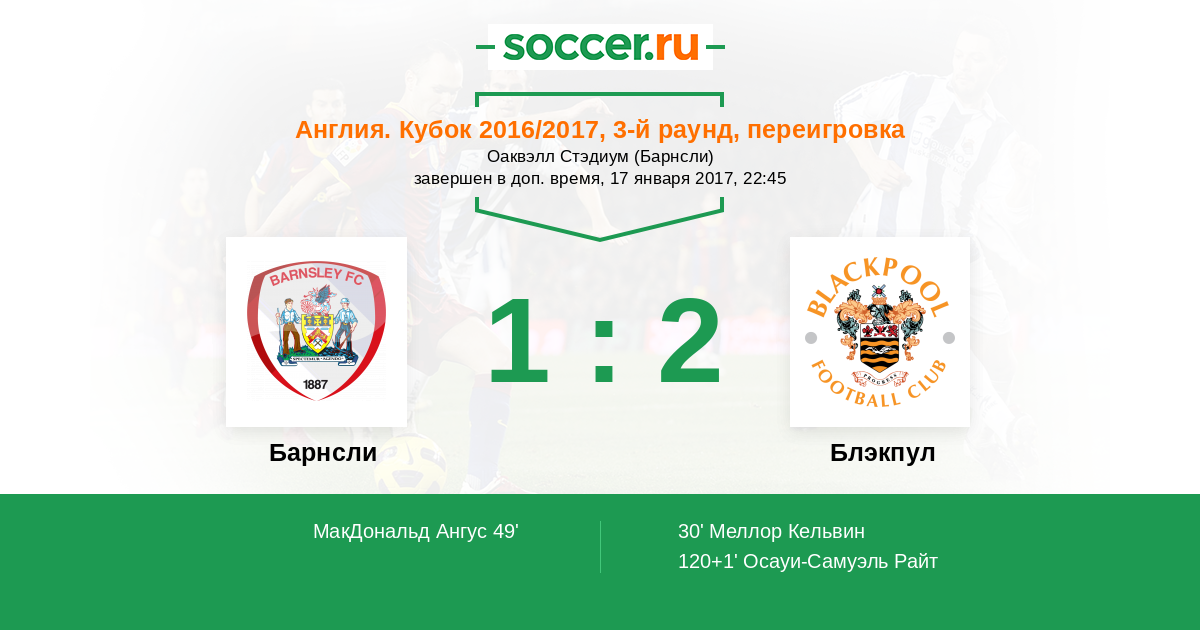 120+1' (1:2) Осауи-Самуэль Райт (21) (Филлискирк Даниэль (18))