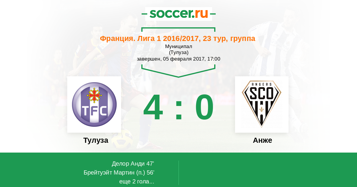 47' (1:0) Делор Анди (39) (Жан Корентен (15))