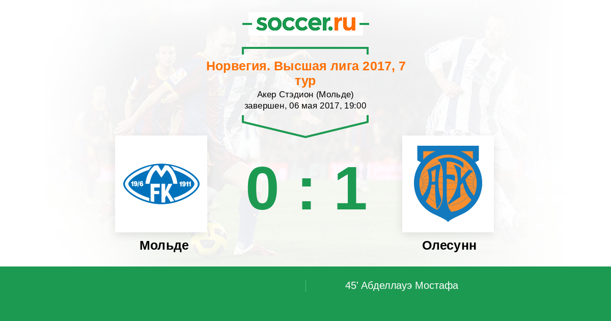 45' (0:1) Абделлауэ Мостафа (30) (Фет Сондре (17))