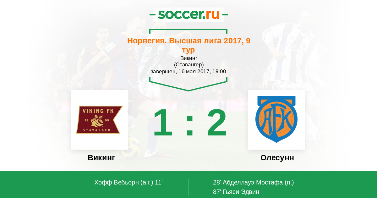 11' (1:0) Автогол Хофф Вебьорн (18)