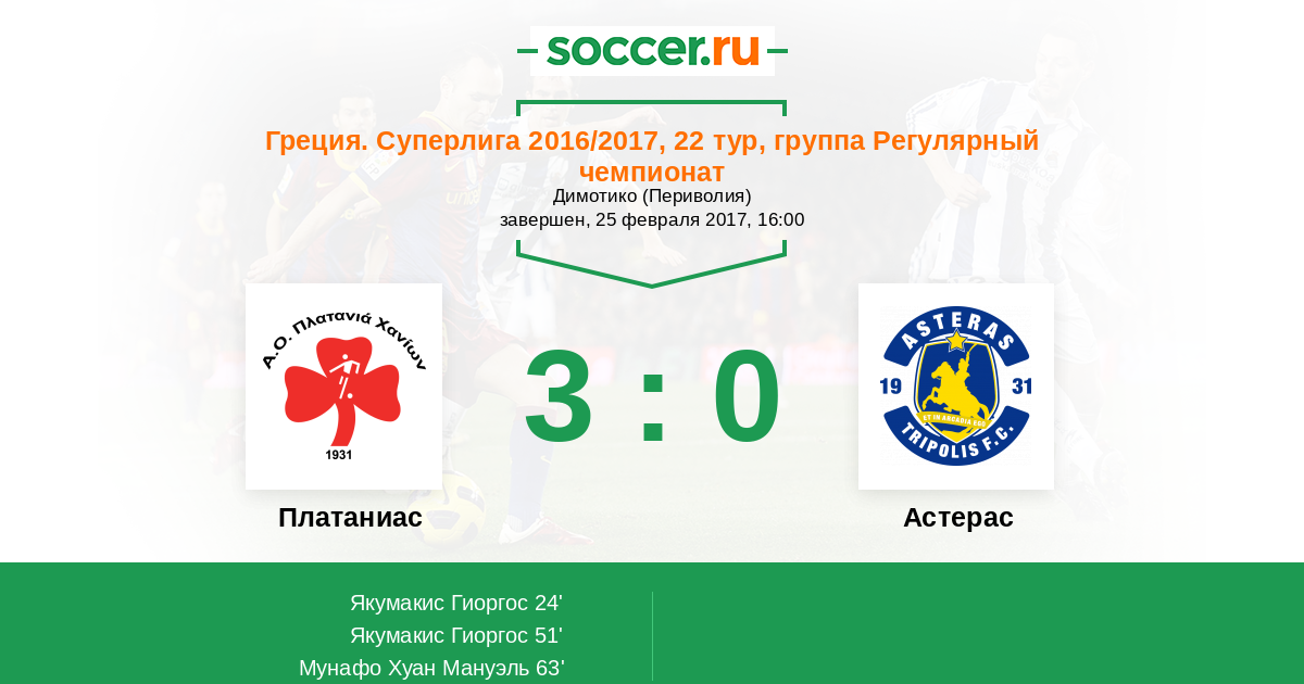 Гол24' (1:0) Якумакис Гиоргос (11) (Манусос Георгиос (9))
