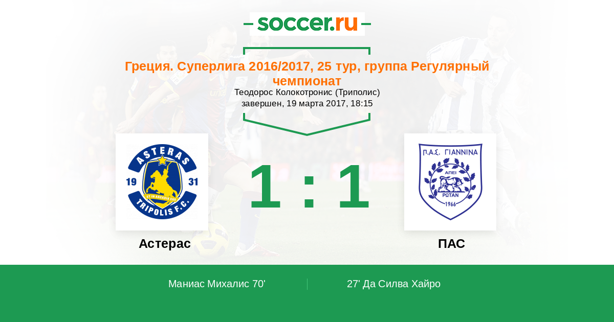 70' (1:1) Маниас Михалис (11)