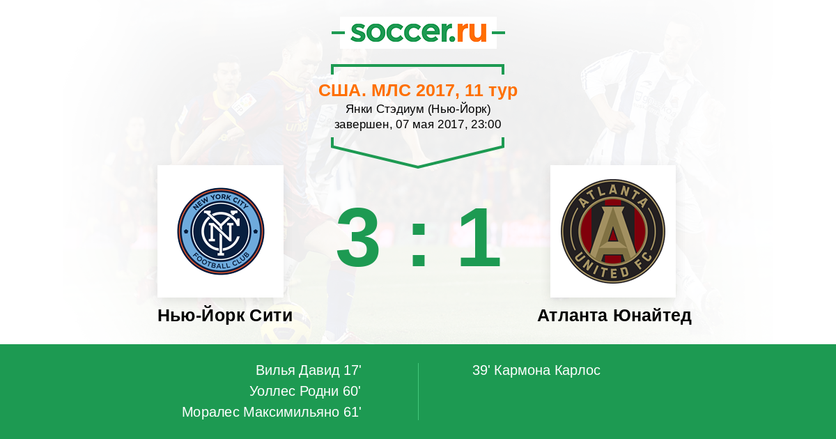 17' (1:0) Вилья Давид (7) (Уоллес Родни (23))