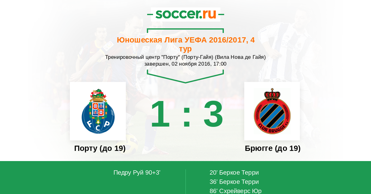 Матчи Юношеская Лига УЕФА 2016/2017