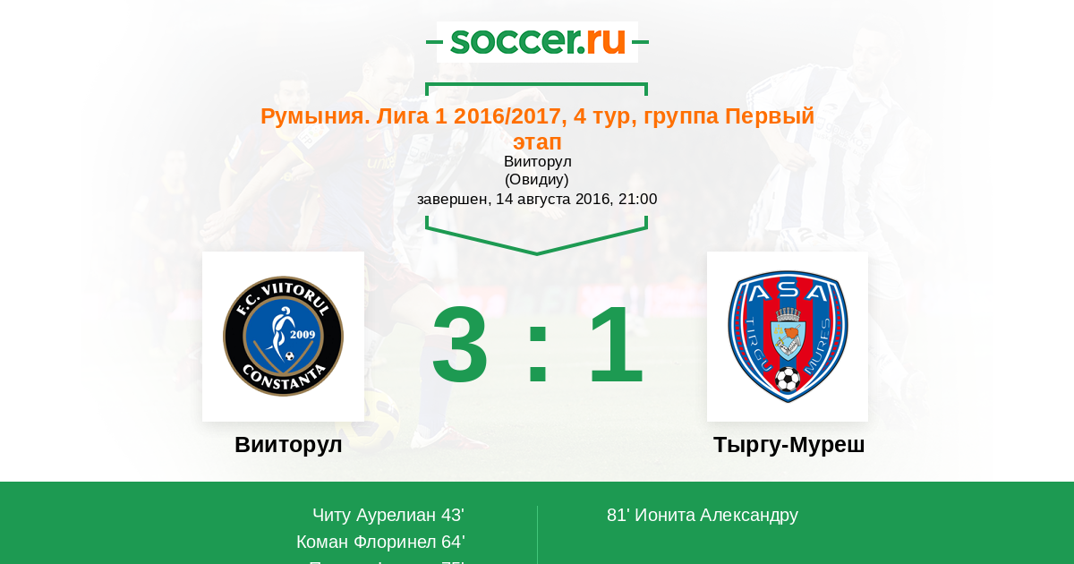 43' (1:0) Читу Аурелиан (25)