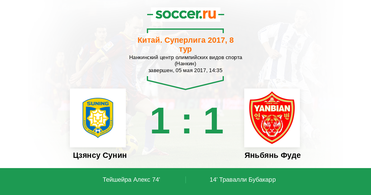 14' (0:1) Травалли Бубакарр (10) (Джин Бо (13))