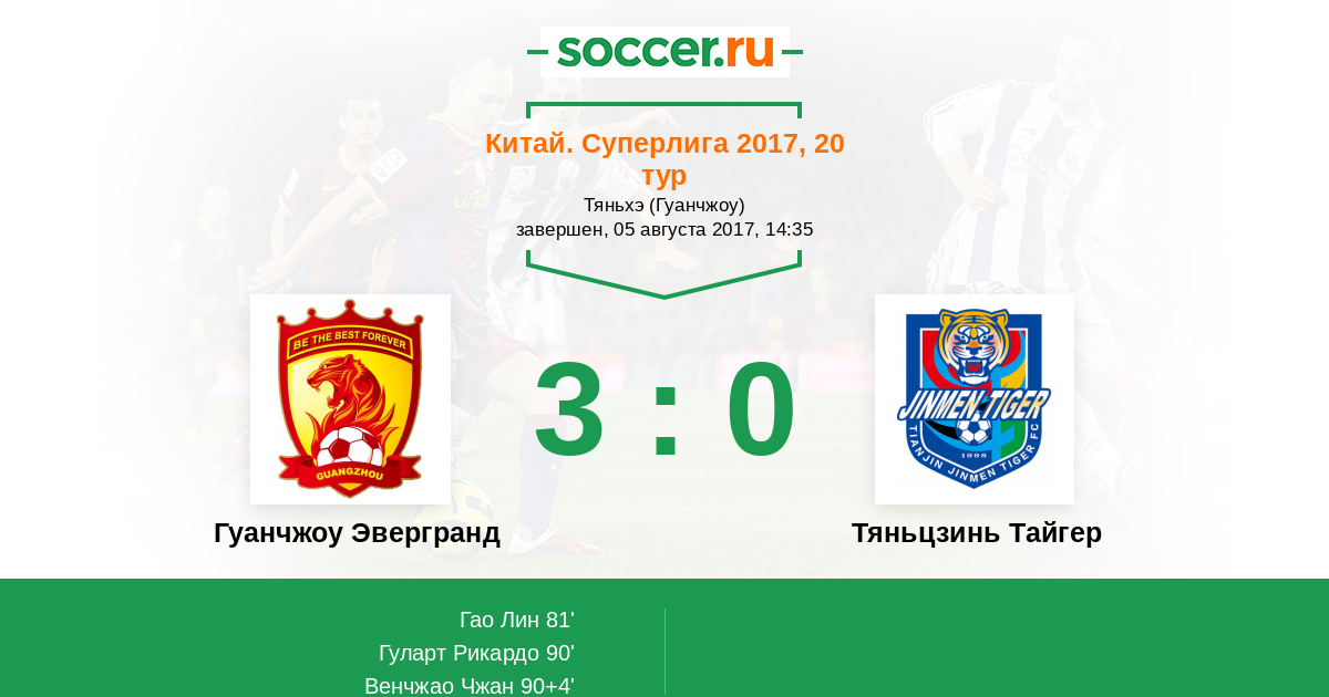 Гол90' (2:0) Гуларт Рикардо (11) (Венчжао Чжан (15))