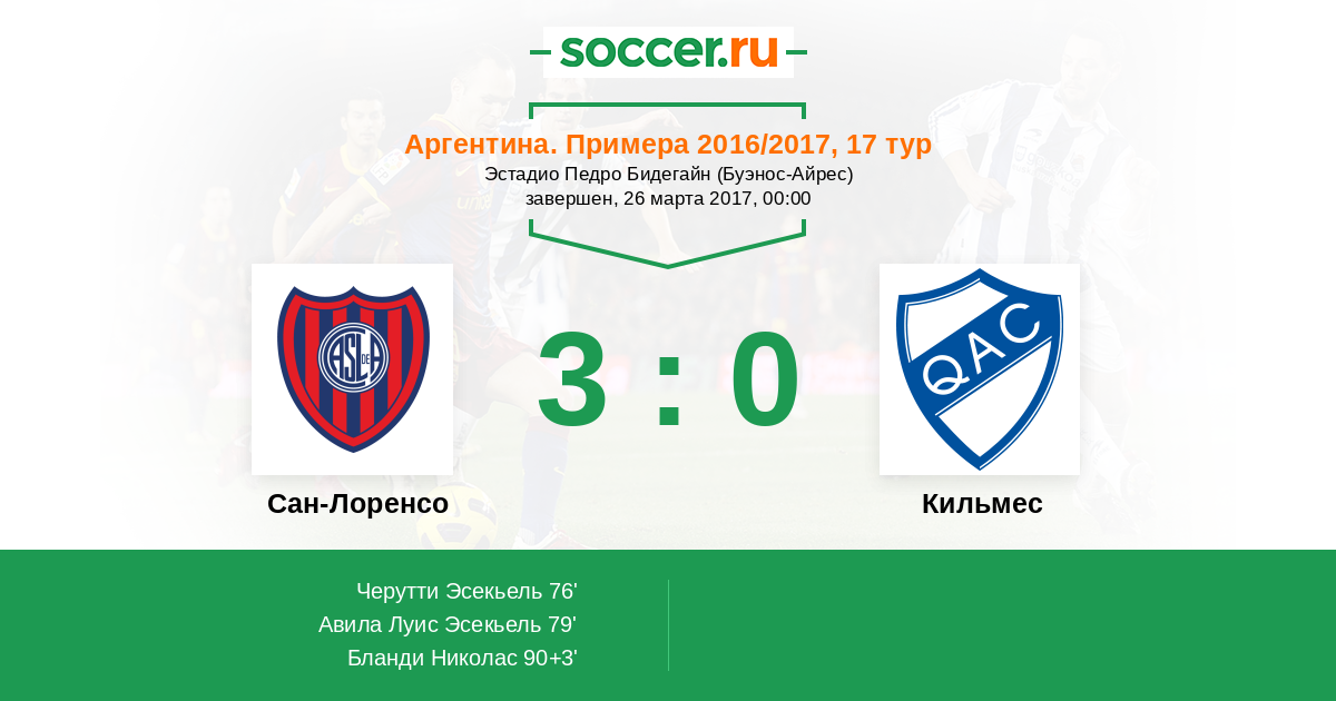 90+3' (3:0) Бланди Николас (9) (Авила Луис Эсекьель (14))