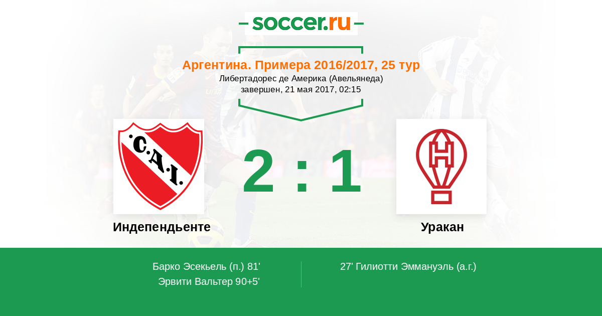 Гол90+5' (2:1) Эрвити Вальтер (10) (Альбертеньо Лукас (18))