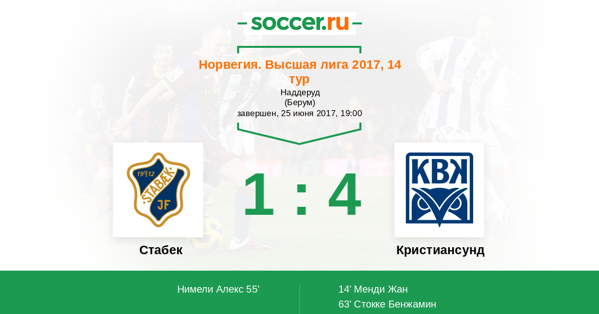 63' (1:2) Стокке Бенжамин (20) (Каллудра Лиридон (9))