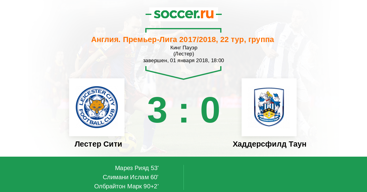 53' (1:0) Марез Рияд (26) (Олбрайтон Марк (11))