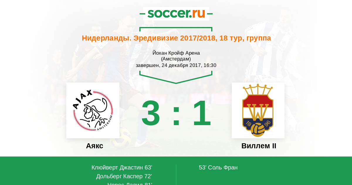Матчи Нидерланды. Эредивизи 2017/2018