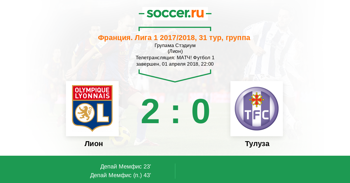 43' (2:0) Депай Мемфис (11)