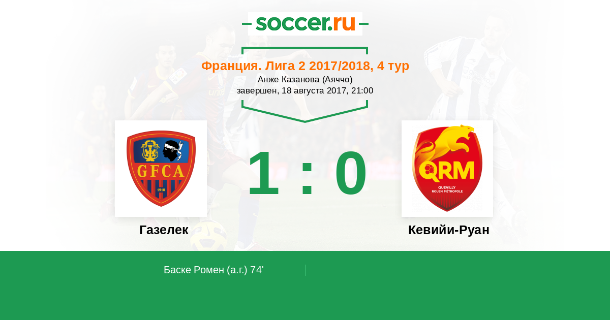 74' (1:0) Автогол Баске Ромен (14)