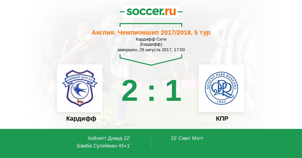 45+1' (2:1) Бамба Сулейман (14) (Хойлетт Дэвид (33))