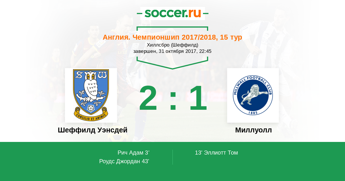 13' (1:1) Эллиотт Том (19)
