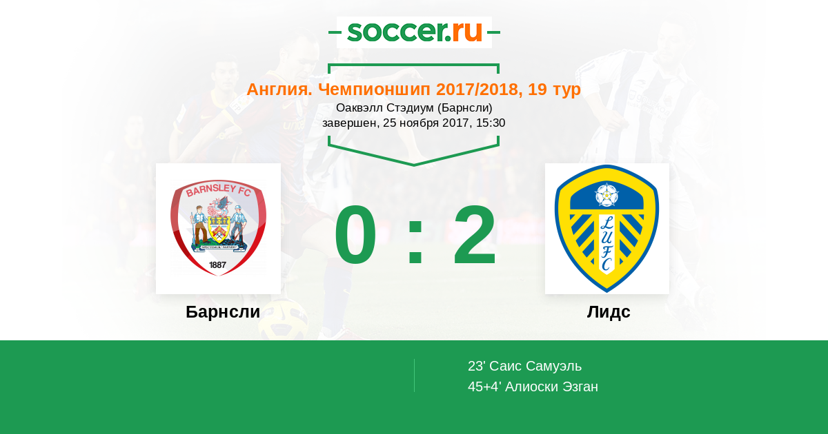 45+4' (0:2) Алиоски Эзган (10) (Эйлинг Люк (2))