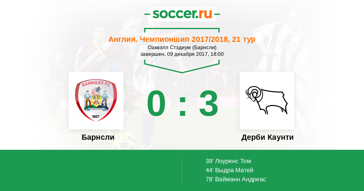 39' (0:1) Лоуренс Том (10)