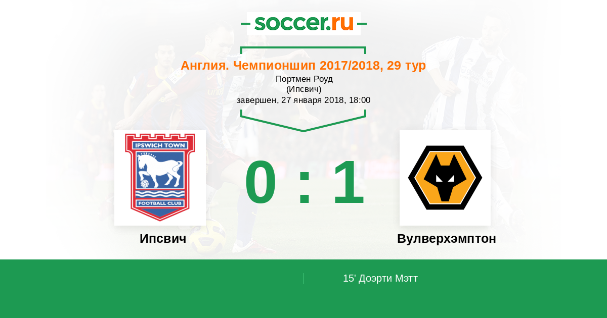 15' (0:1) Доэрти Мэтт (2) (Дуглас Барри (3))