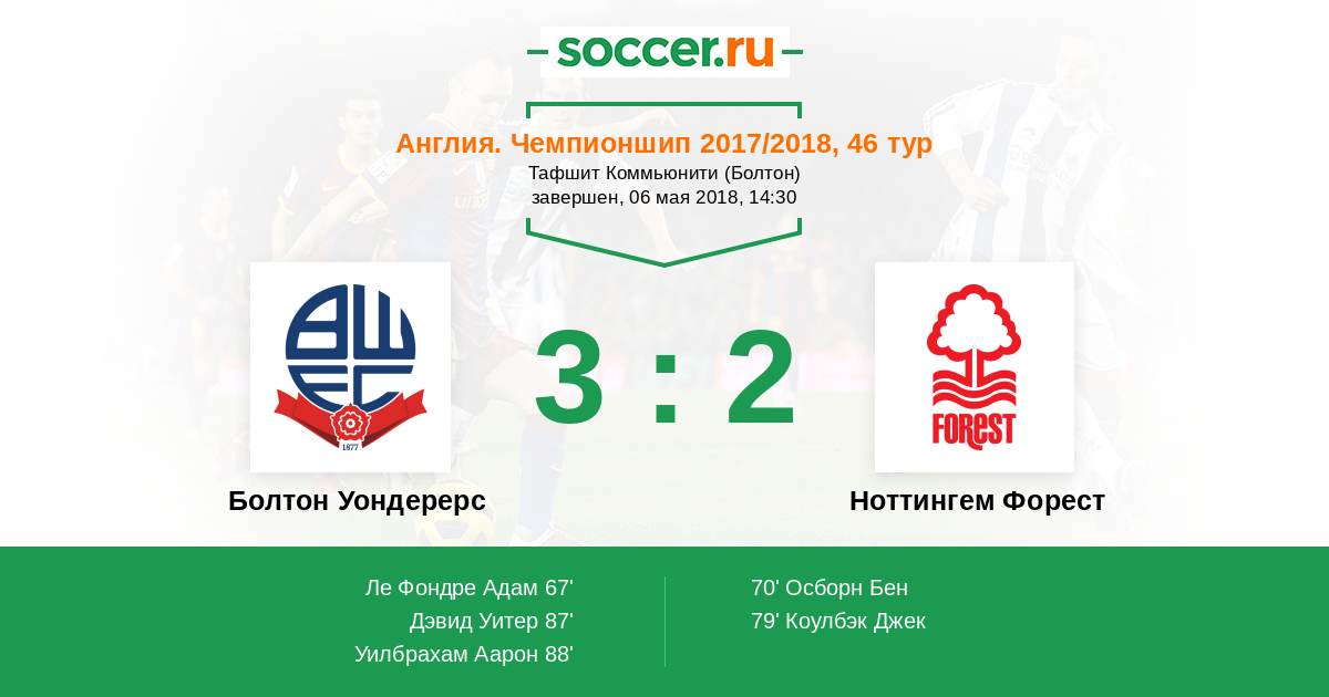 88' (3:2) Уилбрахам Аарон (18) (Ле Фондре Адам (9))