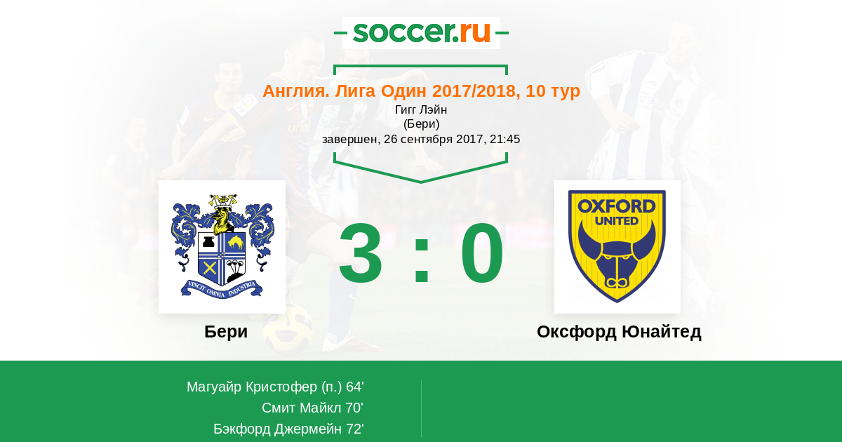 70' (2:0) Смит Майкл (29) (Бэкфорд Джермейн (9))