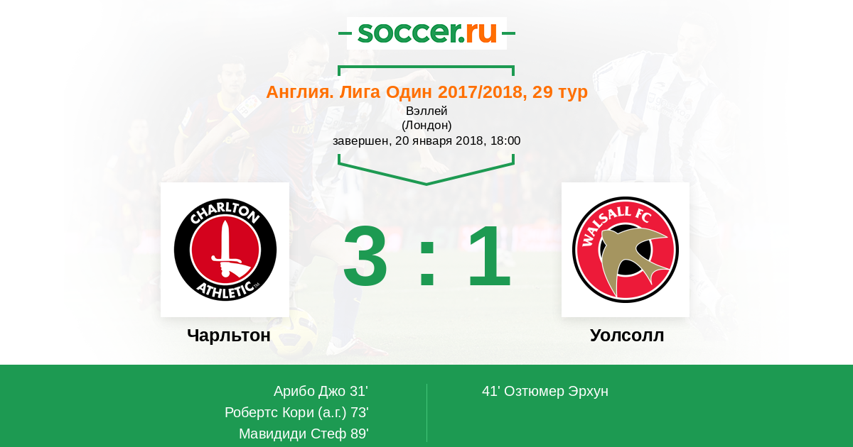 31' (1:0) Арибо Джо (17) (Марк Маршалл (7))