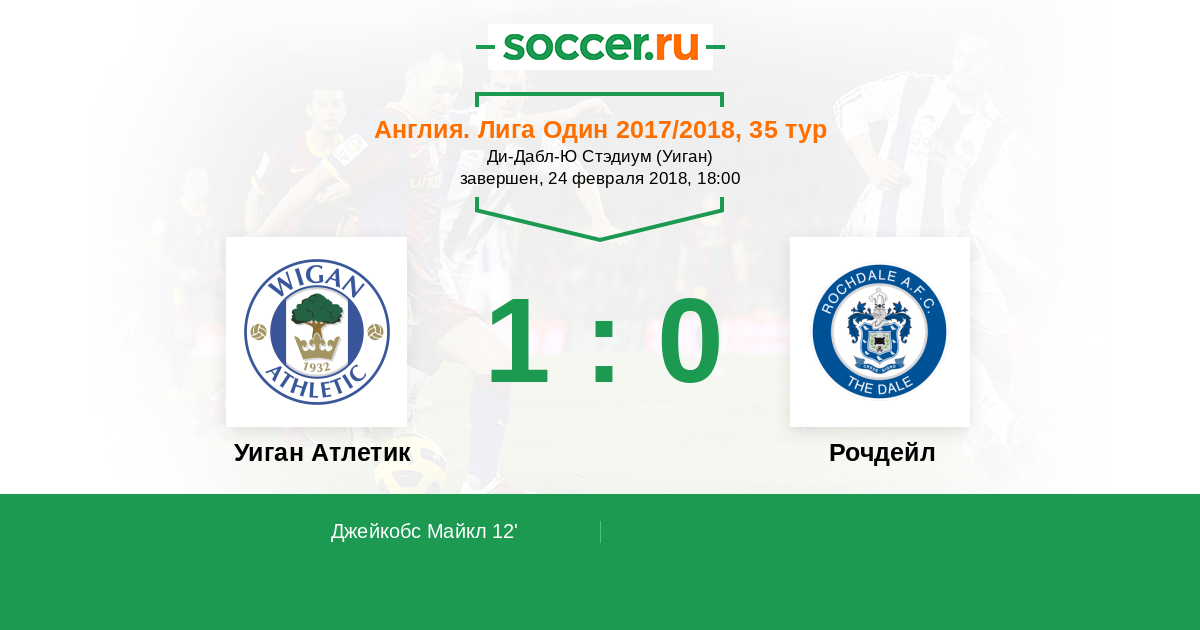 12' (1:0) Джейкобс Майкл (17) (Уокер Джейми (7))