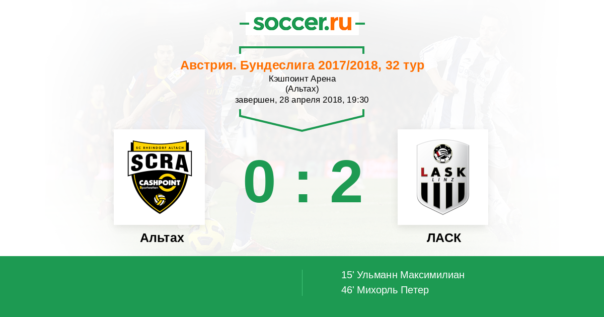 46' (0:2) Михорль Петер (8) (Ранфтль Рейнхолд (26))