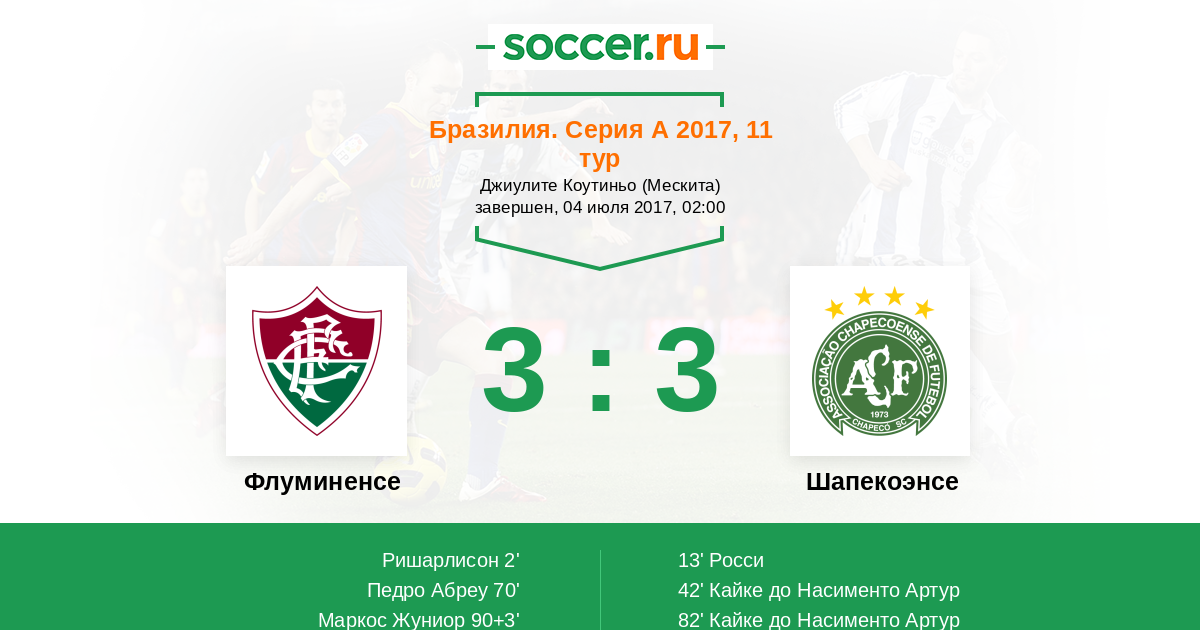 90+3' (3:3) Маркос Жуниор (35) (Ришарлисон (70))