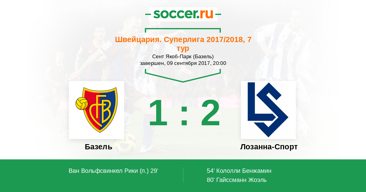 80' (1:2) Гайссманн Жоэль (8) (Кампо Самуэле (11))