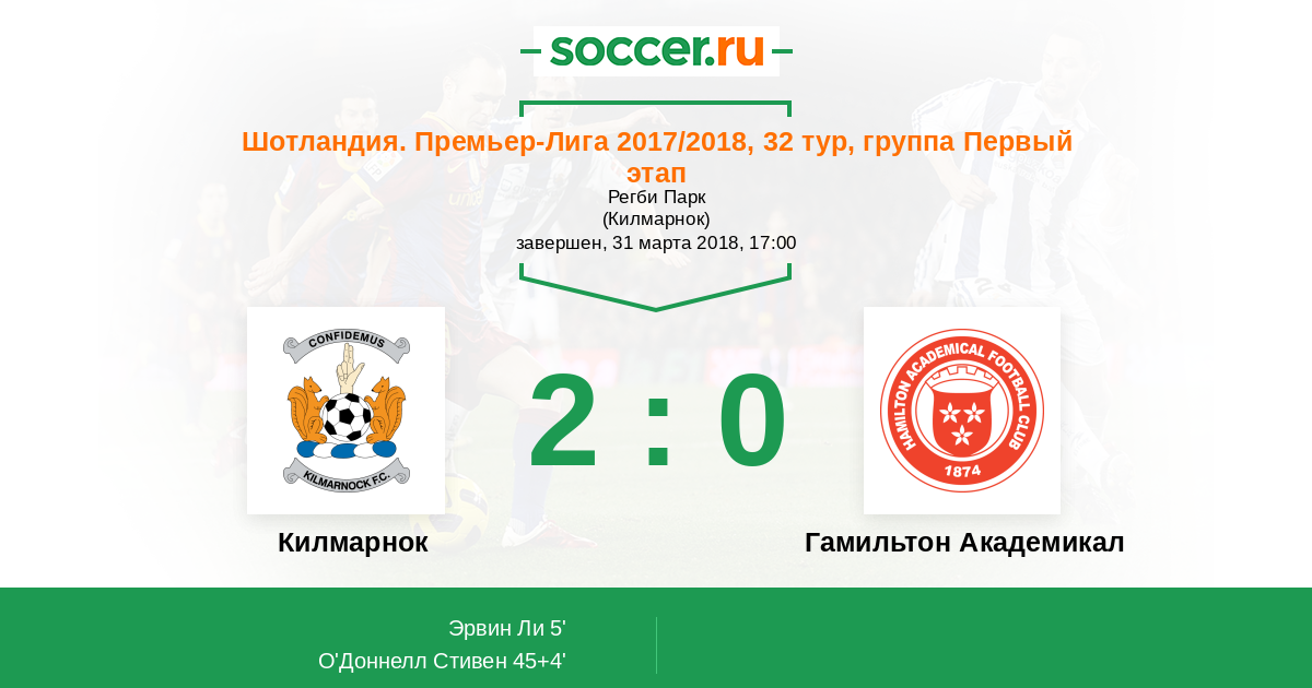 45+4' (2:0) О'Доннелл Стивен (2)