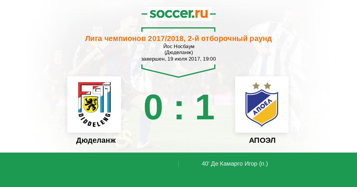 40' (0:1) Де Камарго Игор (9)