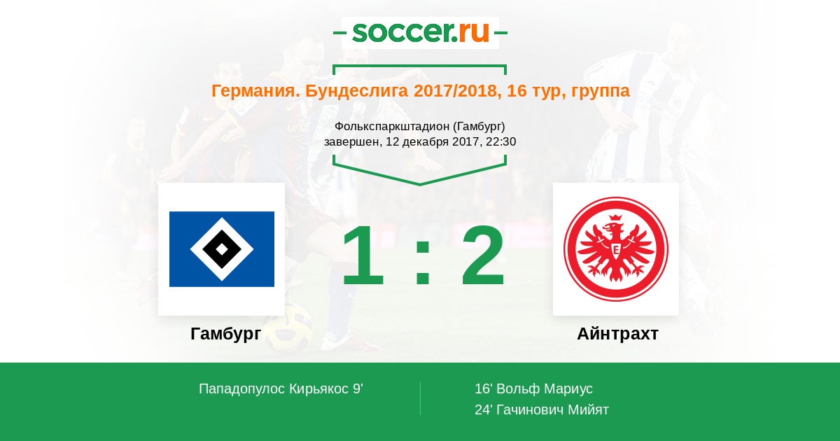 9' (1:0) Пападопулос Кирьякос (9) (Хант Аарон (14))