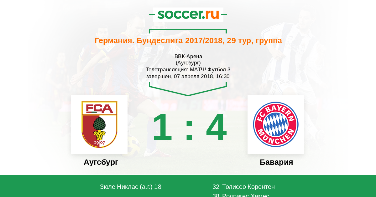 18' (1:0) Автогол Зюле Никлас (4)